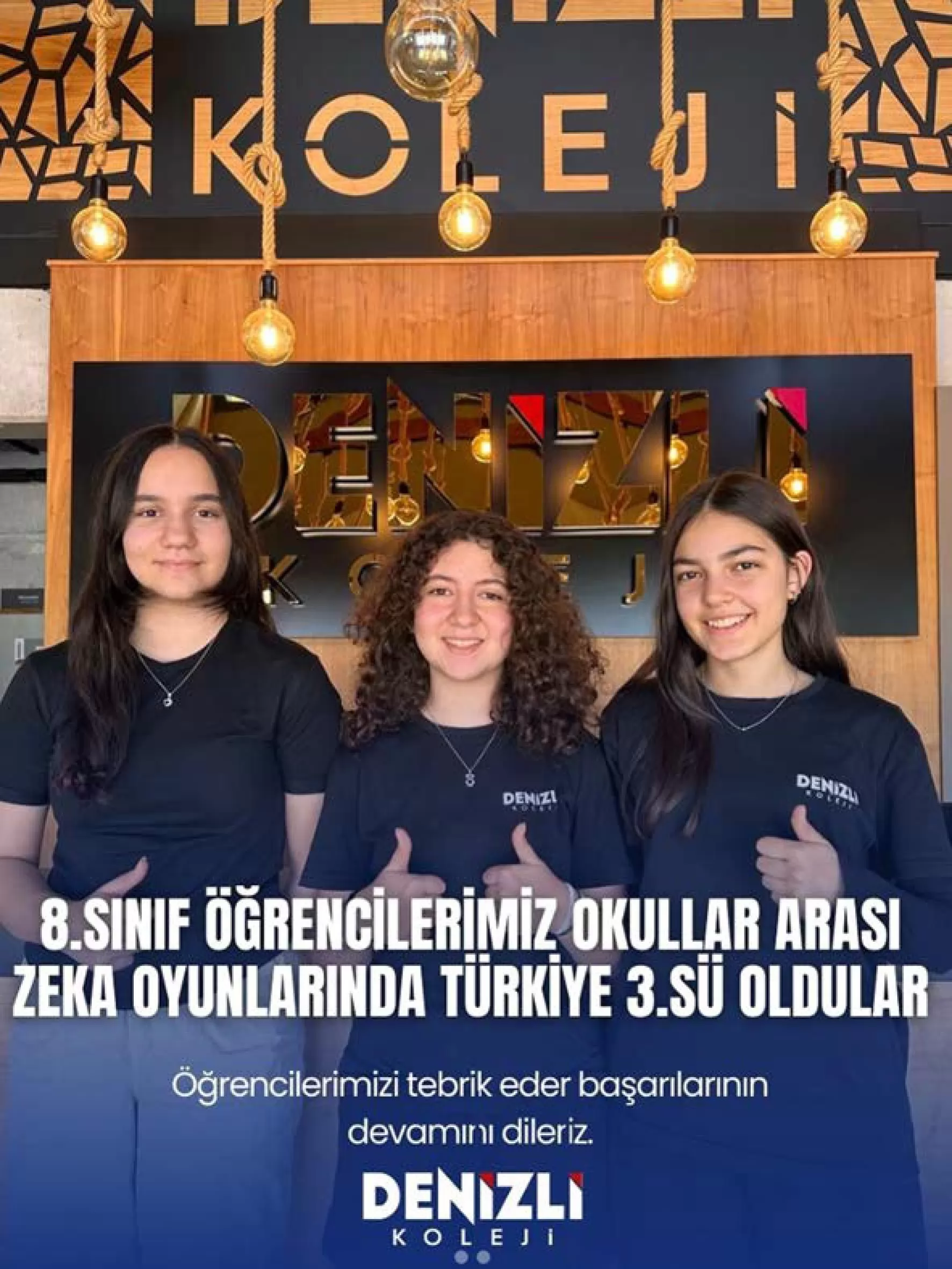 Türkiye Akıl ve Zeka Oyunları Vakfının düzenlemiş olduğu "Akıl Oyunları" müsabakalarında Türkiye 3.sü olarak büyük bir başarıya imza atan öğrencilerimizi tebrik ediyoruz.